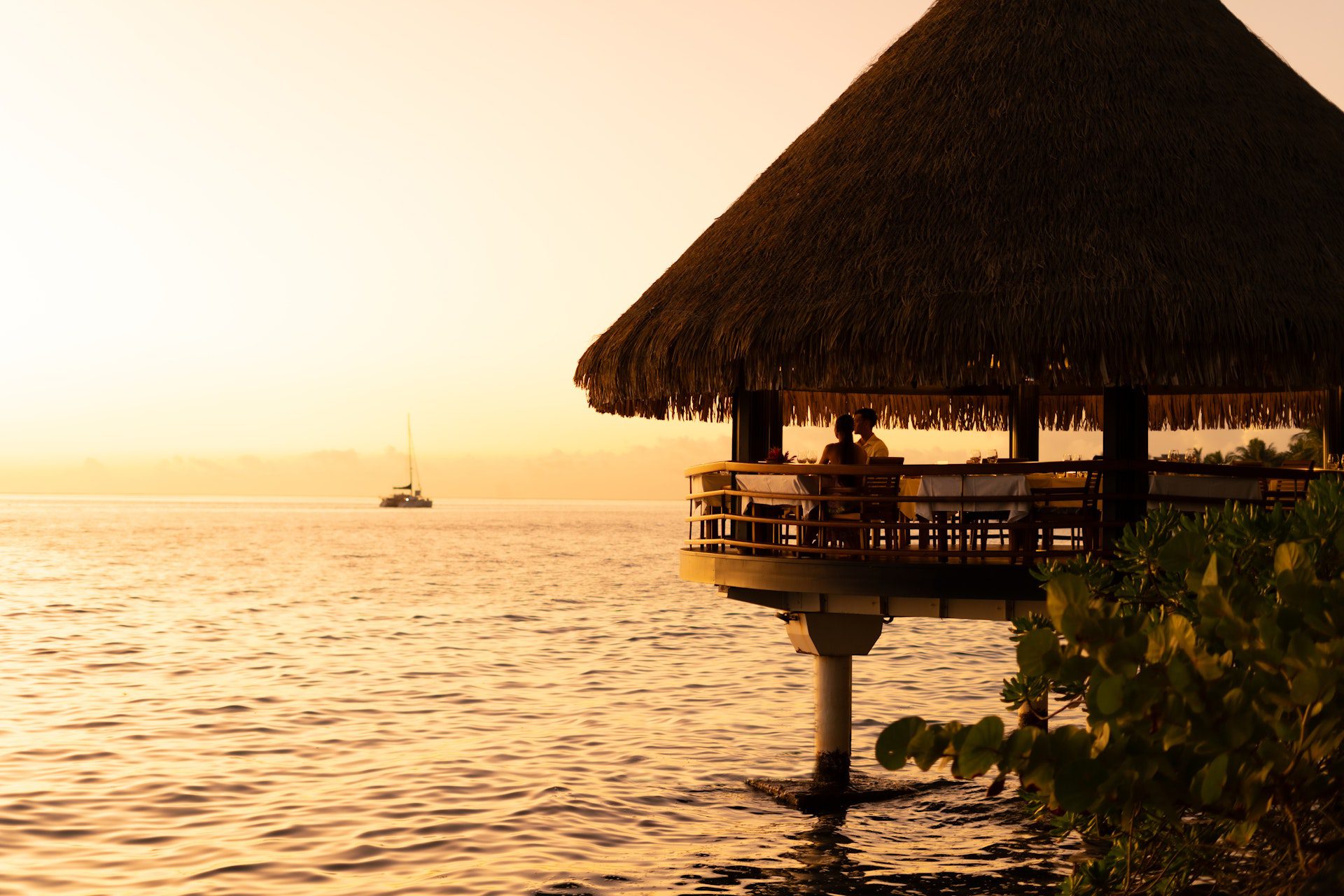 Surplombant le lagon, dans un cadre élégant, Le Lotus est notre restaurant sur pilotis. Son cadre idyllique, près de notre piscine à fond de sable, vous permet d'apprécier pleinement la beauté inouïe de Tahiti et de Moorea, autour d'un dîner romantique.
